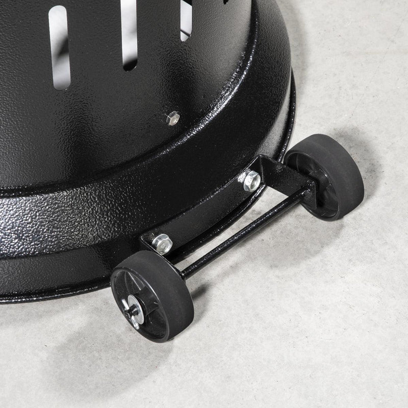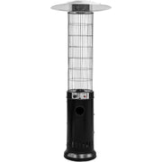 Innovative design of gas flame spiral style patio heater. Contemporary freestanding patio heater ideal for both commercial and domestic settings including restaurant and pub gardens, open workshops, boat yards, patios, forecourts and terraces. Standing at 2.1m tall, when lit the heater produces a real flame encompassed by a glass tube and heats the surrounding area. Metal reflector makes sure heat is directed downwards and outwards. Variable heat output controls make it fully adjustable. Features a fully enclosed gas cylinder chamber and safety tip-over switch. Supplied with regulator and hose assembly for use with propane patio gas bottles. Some assembly is required. For outdoor use only.